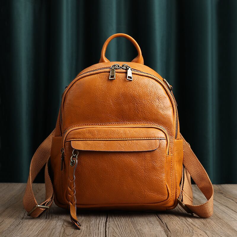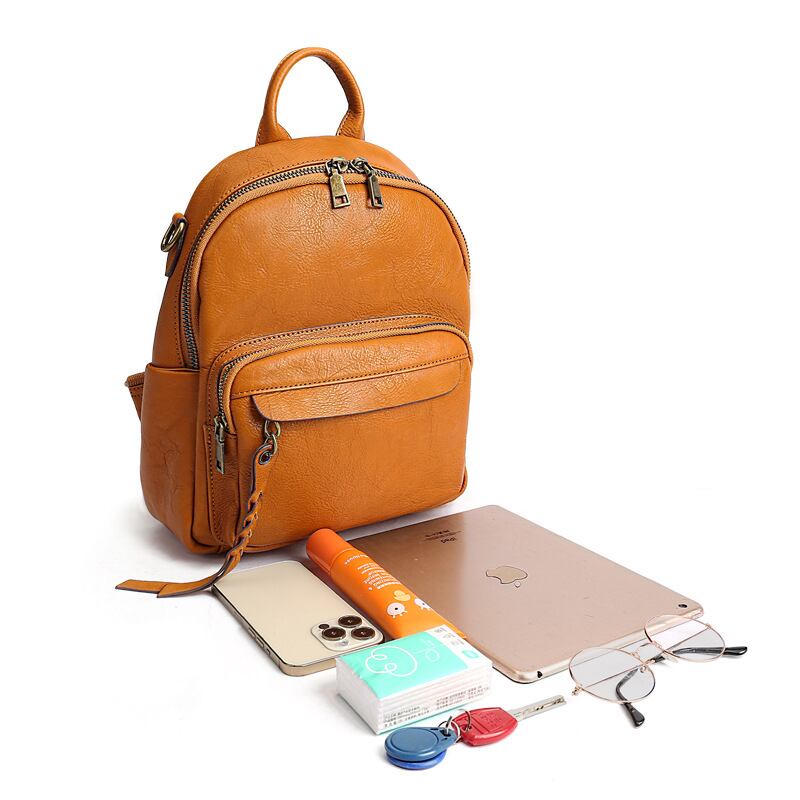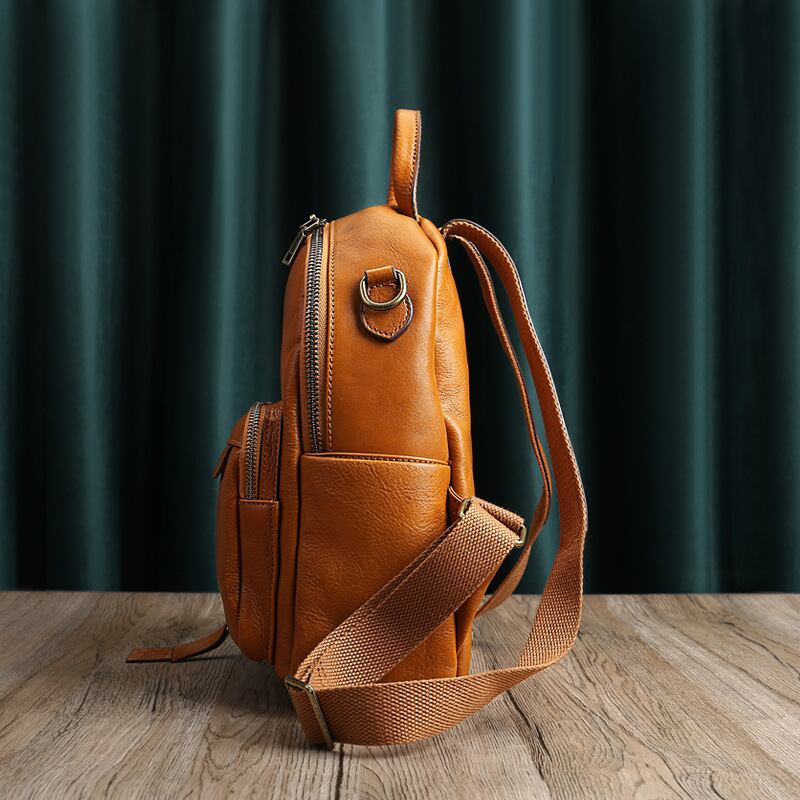 ハイセンスなレトロ調本革レディースバックパック。自分だけのスタイルを楽しむのにぴったりなアイテムです。コンパクトながらも収納力抜群! ちょっとしたお出かけに最適です。
